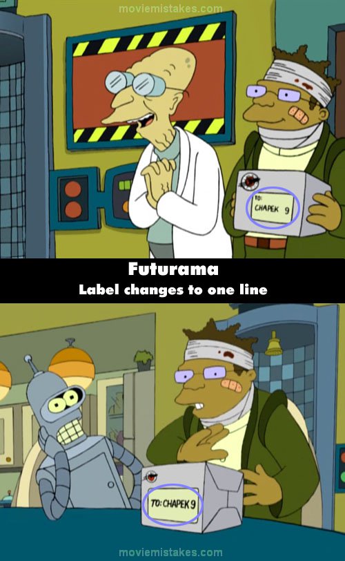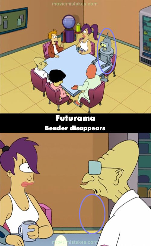 A few screenshots of some great mistakes from Futurama, just because...well, why not?