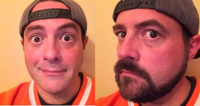For an upcoming green screen shoot for his film Yoga Hosers. He looks really weird. By which I mean normal. Which is weird.