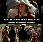 Continuity mistake: In Tortuga, on the dock, Anamaria slaps Jack twice. In the side shot, Jack says, "You'll get another one," and she picks up her right hand and points her finger right up into Jack's face. When Will says, "That one," Jack spins around, and in this shot when he asks, "What one?" now Anamaria's left hand is the one pointing at Jack's face. (01:02:20)