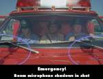 Visible crew/equipment: When Station 51 is dispatched to the movie studio, during the rescue of the injured stunt guys, the bulging outlines of the mic transmitters and wires are visible on either the backs or sides of Chet's, Roy's, and Johnny's shirts.