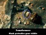 Visible crew/equipment: When Ron and Sam are discussing college and girls, in the shot facing Mikaela, as she's airbrushing the design on the motorcycle, the reflection of a crewmember (wearing a blue shirt) holding a reflector screen is visible on the chrome surface at the left, and as the camera pans in closer to her its moving shadow is also visible. (00:10:50)