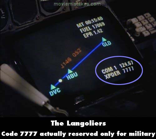 Factual error: When initially investigating the missing people and the condition of the airplane, Brian looks at a screen that gives the airplane's transponder code (or "squawk") as 7777. An airliner would never be squawking that code, since this particular code is reserved for military interceptor operations.