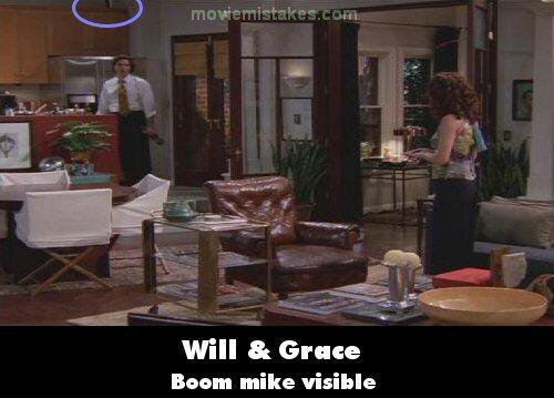 Visible crew/equipment: As Will gets a drink from the fridge, you can see the boom mike above him, following him as he walks around, to pick up his audio. (00:14:50)