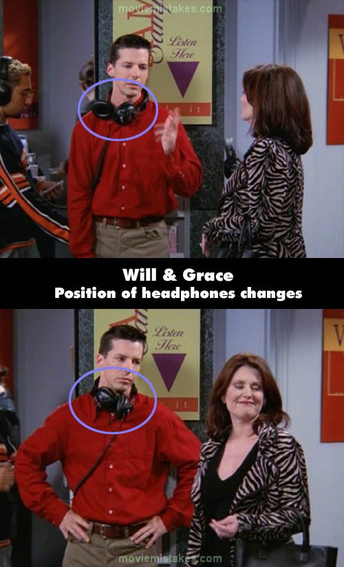 Continuity mistake: When Karen is telling Jack, in the CD store, that him and Rosario have to convince the INS that they're married, the position of the headphone around Jack's neck change. (00:03:40)