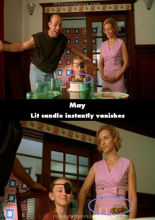 Continuity mistake: When May blows out the candles on her cake one candle is left lit. In the next shot all candles are out. (00:01:50)