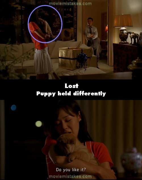 Continuity mistake: The way Sun is holding the puppy change between the shots. (00:15:20)