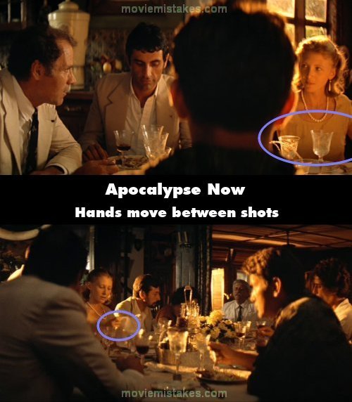Continuity mistake: Hubert de Marais continues to speak to Roxanne in French. As she looks at him intently her expression changes and she goes from having her hands at her sides to unfolding her napkin again between shots. (02:04:30)