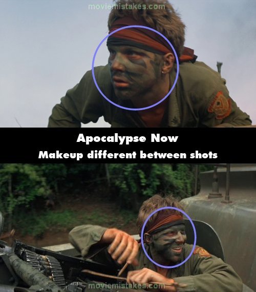 Continuity mistake: Lance comes down from the roof of the boat and we get a good close-up look at his makeup. Fifteen seconds later as the arrows start flying his facial makeup is entirely different (neck, nose, ears, bandanna). (02:21:15)