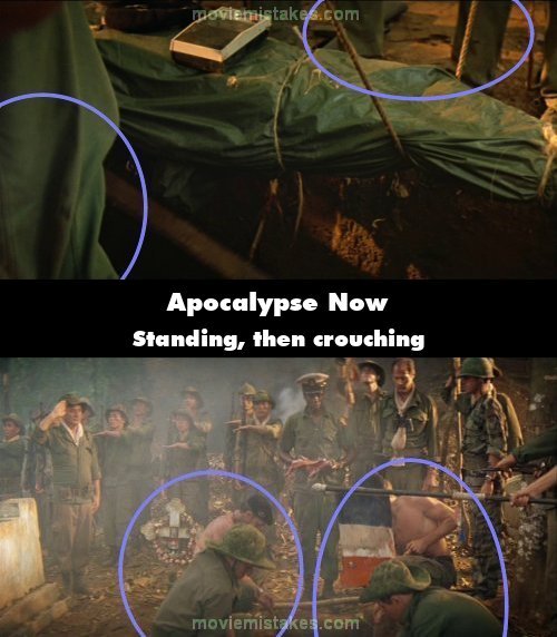 Continuity mistake: When the soldiers lower Clean's body into the grave they're all standing. In the next shot they're all crouching. (02:01:50)
