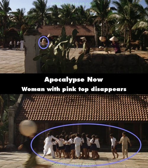 Continuity mistake: As the VC first hear the helicopters coming an old woman in a pink top with a baby runs across the schoolyard. In the next shot she disappears and most of the school children have changed positions. (00:39:05)
