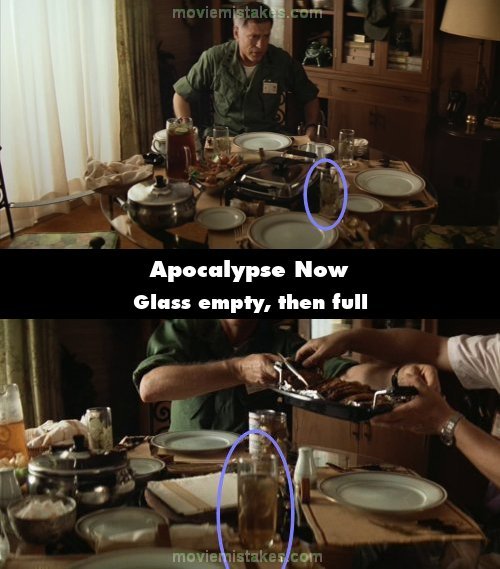 Continuity mistake: As everyone sits down to have dinner at the General's all the glasses are empty. The next time we see them they're full but no one went around the table filling them. (00:11:40)