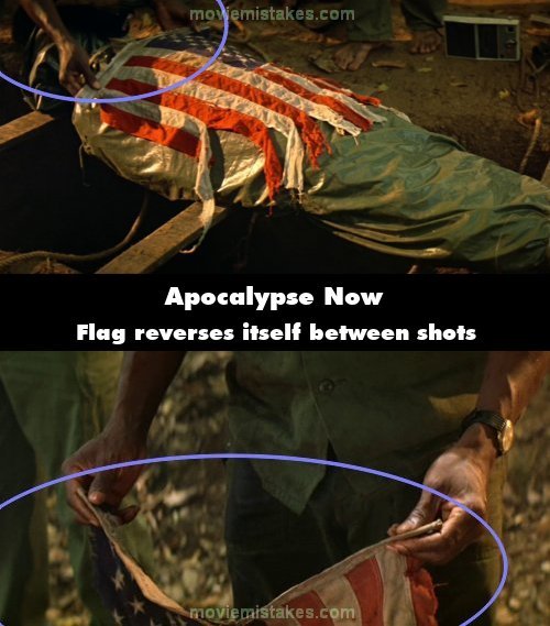 Continuity mistake: At the funeral Chief Phillips picks up the flag from Clean's body holding it between his fingers about two inches in on each end. In the next shot he's holding it on the edges and the flag is reversed with the stars and stripes on the right. (02:01:15)