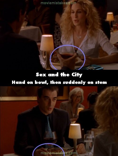 Continuity mistake: In the restaurant with Big and Carrie, Big's either holding the stem of his wine glass, or holding it above the stem between shots. There isn't any time for him to switch the position of his hand between shots.