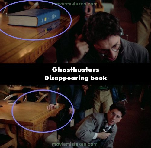 Continuity mistake: The large blue book that Peter drops on the table to startle Egon disappears off the table in the next shot. (00:07:10)