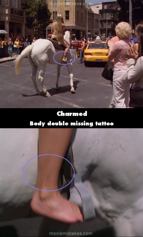 Continuity mistake: At the end of the episode it is not Alyssa riding the horse to the café. Alyssa has a tattoo on her right ankle, which when we see when camera pans up the right leg the person riding the horse has no tattoo on the right foot, but when Alyssa rides away you can see the tattoo she has going round her right ankle.