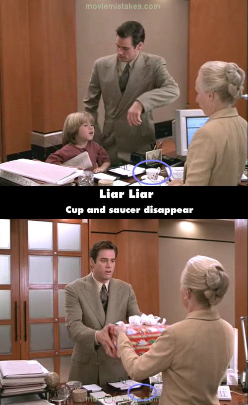Continuity mistake: Just before Greta hands Fletcher his son's birthday present, the cup and saucer on her desk disappears and re-appears between shots. Her glasses and the gift to herself also change position. (00:07:45)