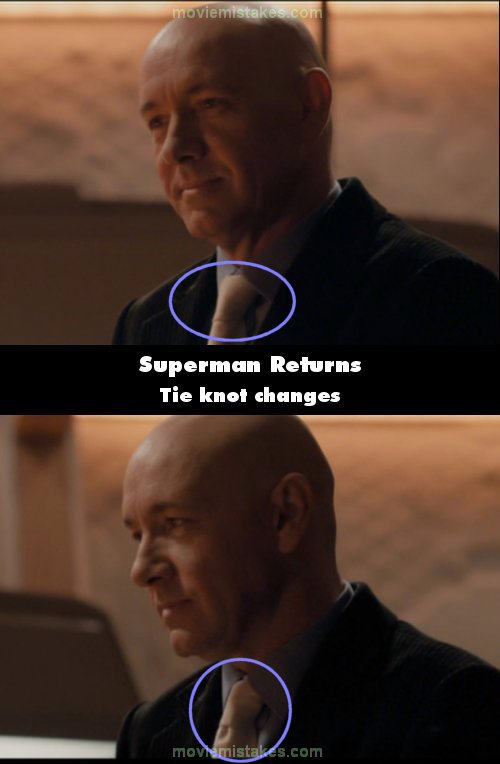 Continuity mistake: When Lois Lane and Lex Luthor are talking on the ship, the knot on his tie changes throughout the scene.