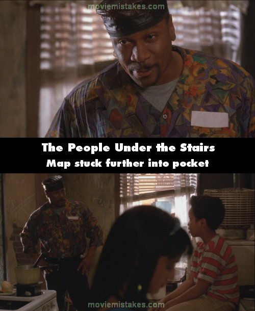 Continuity mistake: When Leroy is in the kitchen talking to Ruby and Fool, the position of the map in his shirt pocket changes a few times in the scene. (00:07:30)