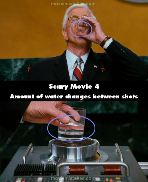 Continuity mistake: When the President is at the UN and he puts the glass of water down on the red button after he takes a drink the glass is nearly empty, but when he places it on the button it is half full. (00:53:55)