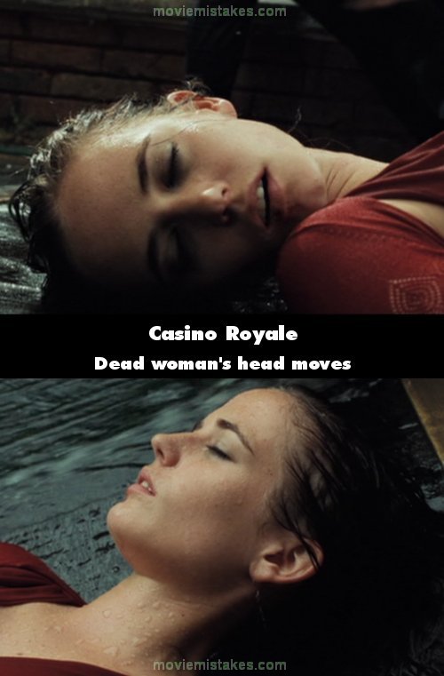 Continuity mistake: At the end where the building gets destroyed, in one of the shots on top of the destroyed building, Bond is looking at Vesper and her head is facing to the left. However in the very next shot and for a few more shots, her head is suddenly facing straight up at Bond. (02:17:25)