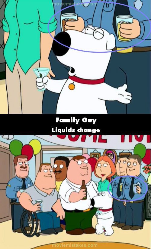 Continuity mistake: When Brian is giving his speech at the end, it shows two policemen. The one on the left has a brown drink and the one on the right has a yellow drink. But in the next shot, the one on the right has a yellow drink and the one on the left has a clear drink. (00:21:05)