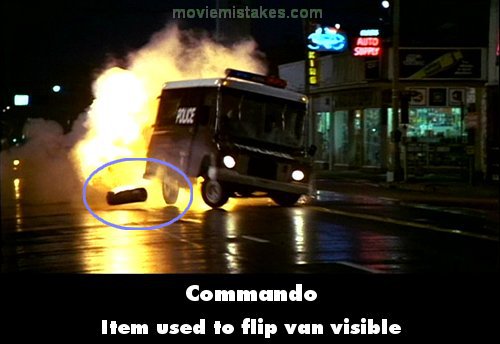 Revealing mistake: During the stunt where the police van flips over (as a result of the rocket launcher attack) you can see the telegraph pole section used to flip the van over. It rolls down the road. (Stunts involving flips rely on a mini pile driver under the vehicle, as opposed to using an explosive charge by itself which can be too unpredictable). (00:54:55)