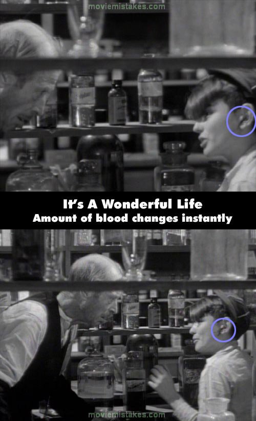 Continuity mistake: When the pharmacist hits young George, the amount of blood coming from George's ear changes back and forth between long shots and close ups.