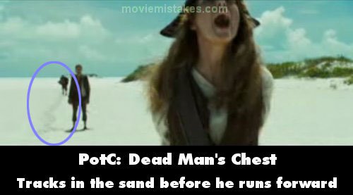 Revealing mistake: When Pintel is running up to Ragetti during Elizabeth's rant on Isle Cruses, you can see the path in the sand where Pintel has run up in previous takes. (01:48:05)
