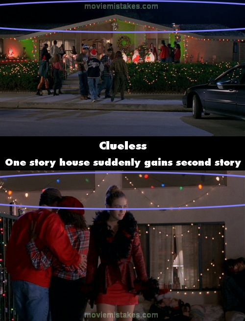 Continuity mistake: When the group arrive at the Valley party you can see that the house is a single story, but later when Cher goes out to the pool the house is now a two story.