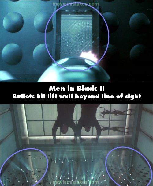 Deliberate mistake: When the trashcan opens fire on the lift with Jay & Kay in, the distance and angles mean it would, at most, be able to hit up to the edges of the rear doors. When the inside of the lift is shown, the bullets have somehow managed to reach right to the edges of the lift. (01:02:15)
