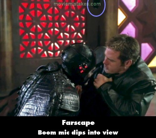 Visible crew/equipment: When Scorpius is choking Crichton and Crichton says, "Aw, what's the matter, Scorpy?", the boom mic pops into picture right above Crichton.