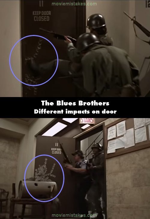 Continuity mistake: When the multitude of police are shooting through the door at the end of the film, there are loads of bullets shot at the door, then there are only a couple dozen bullet holes then there is a bunch of bullet holes. (02:12:40)