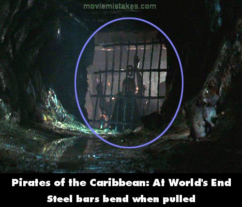 Revealing mistake: Just after Barbossa and Elizabeth reach Sao Feng's residence, down below when Gibbs pulls the bars they actually bend.