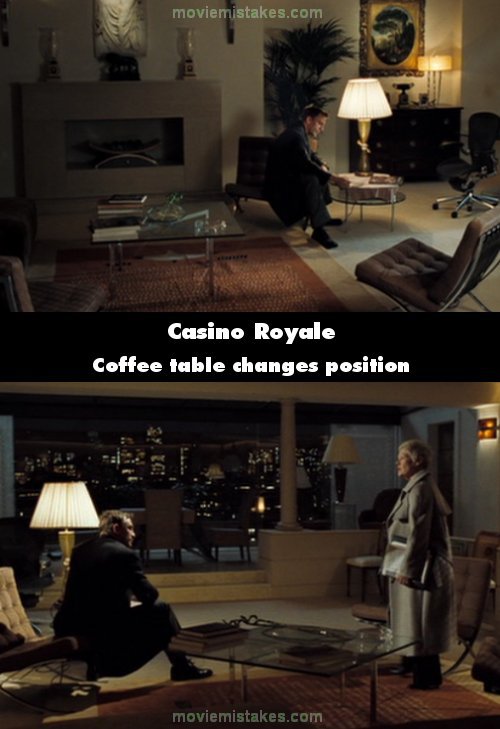 Continuity mistake: During the first scene in M's flat the glass coffee table changes position. When we first see the coffee table it is square to the rug and fire place, however in the next shots it has been moved approximately 45 degrees to the right. (00:24:20)