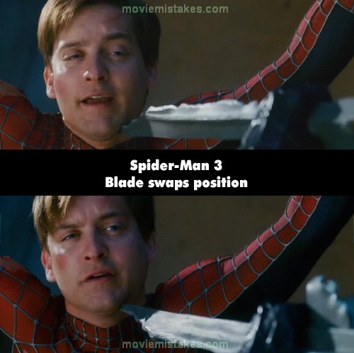 Continuity mistake: The blade put against Spidey's throat faces up, then down in less than a second, without Venom moving it.