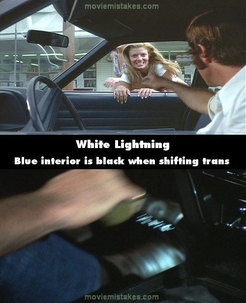 Continuity mistake: After being given the brown Ford sedan, interior shots of Gator reveal the interior is blue. Yet when being shown shifting the transmission in close-up, the interior parts are all black. (00:14:05)