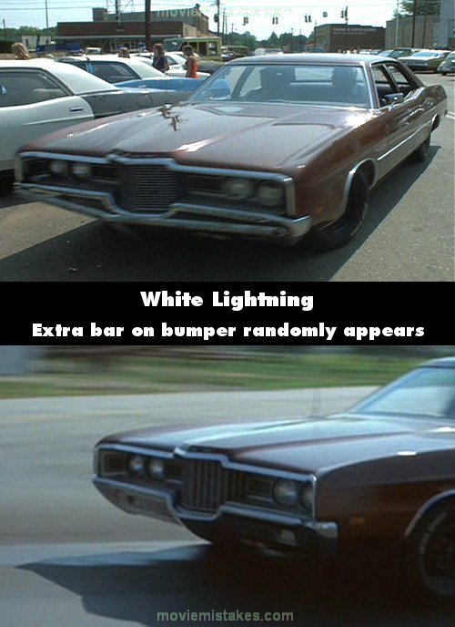 Continuity mistake: As Gator is pulling his brown Ford into a parking space, the front bumper has a pipe bolted to its leading edge in a mild 'V'. This feature is not seen elsewhere in the film and was added to protect the car during filming of a collision later in the film. (00:29:25)
