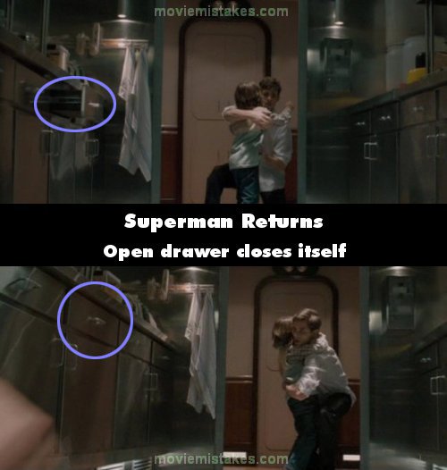 Continuity mistake: In the scene where Richard finds Lois and the son on the yacht, he hugs the boy and you can see that one of the drawers is open. When he looks up at Lois, the drawer is now closed. (01:46:30)