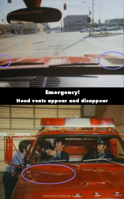 Continuity mistake: When Squad 51 is dispatched and headed to their destination, interior shots looking out the windshield are shown. It is only in these shots that the Dodge truck's red hood has vents on its right and left sides. There is no such thing in any exterior shots of Squad 51. The hood's style also changes.