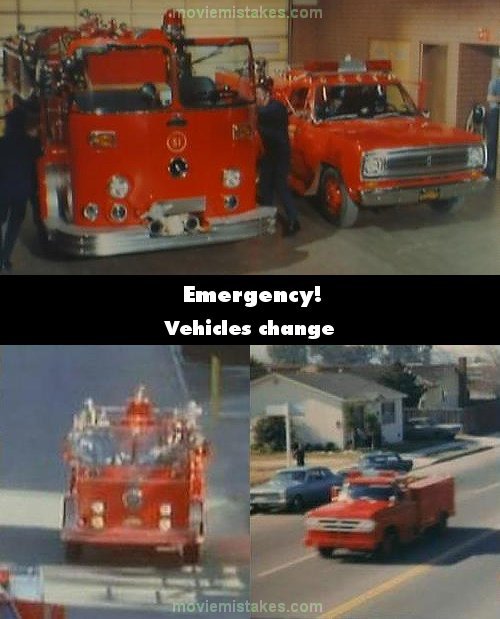 Continuity mistake: During the first two seasons of the show, when Engine 51 and Squad 51 are dispatched, sometimes one or both vehicles change their appearance when they leave the firehouse, while en route, or when they reach their destination. Note the hood, lights, etc.