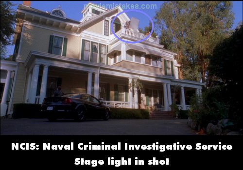 Visible crew/equipment: In the scene where Tony approaches the Mallard residence by car for the first time, there is a stage light, complete with filter(?) on the balcony. (00:13:50)