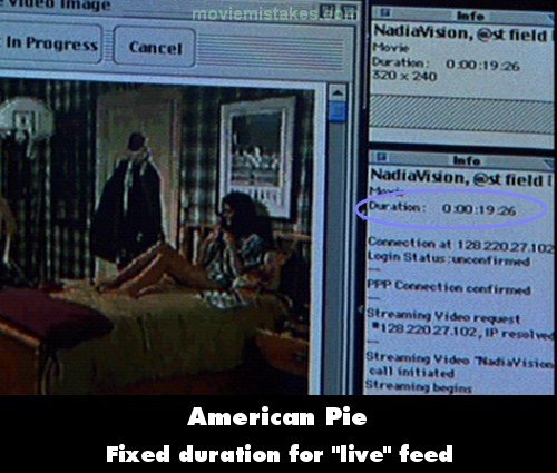 Revealing mistake: When Jim is stripping, if you look at the computer screens you can see a line of text to the right of the video that reads "Duration 0:00:19:26." However, the stream is "live" so the duration should not be static. (00:48:20)