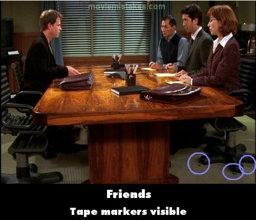 Visible crew/equipment: When Dr.Hobart enters the meeting room to conduct the grant interviews, markers can be seen on the floor around the first chair's wheels as well as in front of the table. (00:12:25)
