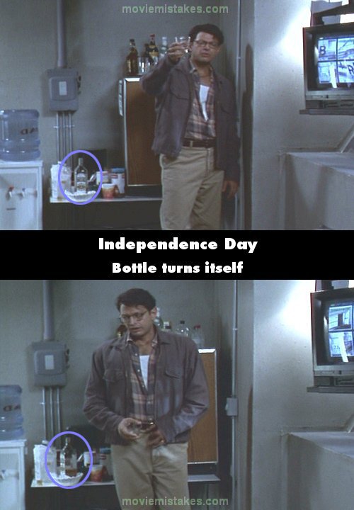 Continuity mistake: After David looks in the fridge for ice, Connie appears at the doorway, and when he makes a toast to the end of the world, the bottle to his right turns between shots, note the label. (01:33:10)