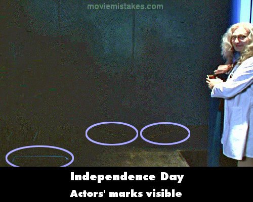 Visible crew/equipment: At the containment lab, just before Dr. Okun unlocks "the vault", three actors' marks are visible. One mark is at the top of the ramp and the other two are visible just past the ramp. (Only visible on fullscreen DVD.)