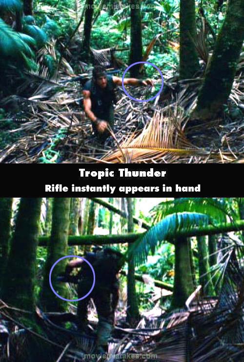 Continuity mistake: When Tugg Speedman leaves the team, when he is climbing a hill his rifle is on his back, but in the next shot he is holding the rifle while climbing. (00:45:00)
