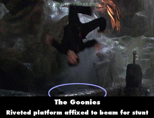 Visible crew/equipment: When Francis Fratelli walks across the beam he slips and does a flip. In the wideshot, we see the sudden appearance of a riveted platform affixed to the beam, extending from its left side, directly in front of Francis. (01:18:00)