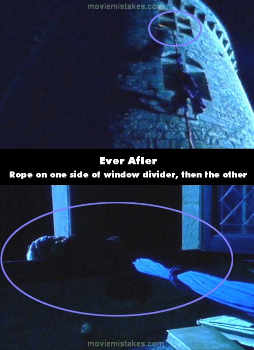 Continuity mistake: When Prince Henry lowers himself out the castle window, the tied bed linens hang through different sides of the divided window, between the exterior shot of Henry and the interior shot when his parents discover his escape.