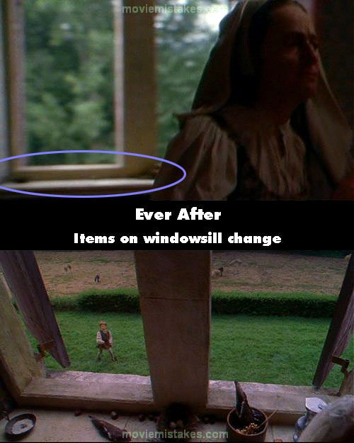 Continuity mistake: When Paulette is dressing young Danielle, before her father's arrival with the new stepmother, just before Louise says, "She must be lovely," she passes the window with items on the windowsill. When Daniel runs to that window the items change. (00:04:30)