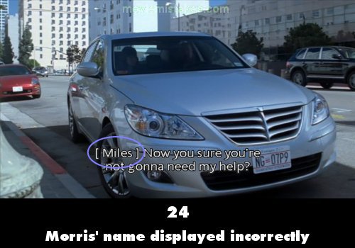 Other mistake: When Morris drops Chloe off at the FBI, he asks if she's sure she doesn't need his help. In the subtitles, Morris' name is incorrectly displayed as "Miles".